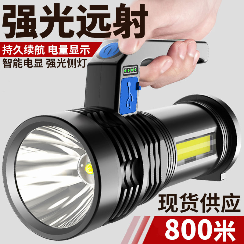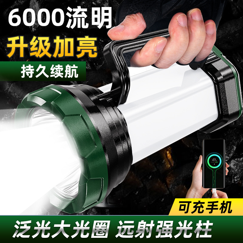 Senter lintas batas, pengisian daya cahaya kuat, lampu portabel jarak jauh super terang luar ruangan, daya tahan lama, kapasitas besar rumah