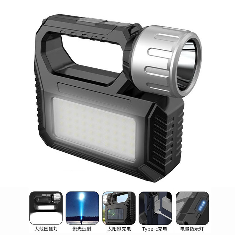 Lampu sorot anti ledakan USB lintas batas dengan lampu samping COB tahan air luar ruangan lampu kuat darurat lampu senter daya tinggi