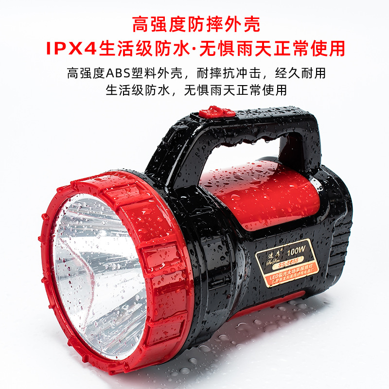 Senter portabel daya tinggi 100W, dapat diisi ulang patroli luar ruangan jarak jauh terang kendali banjir besar senter api