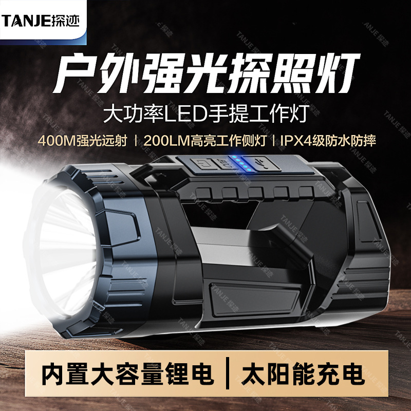 Lampu sorot led Multifungsi, lampu senter led rumah tangga luar ruangan portabel dapat diisi ulang tenaga surya, lampu sorot besar portabel