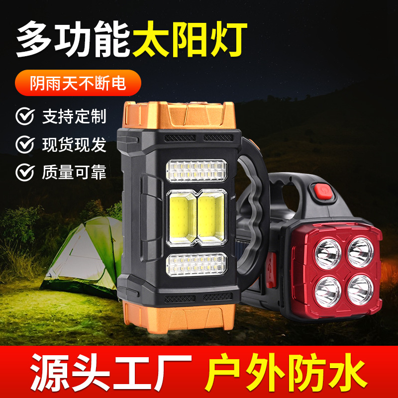 Cross-border lampu senter luar ruangan, cahaya darurat portabel multifungsi luar ruangan pengisian tenaga surya berkemah USB pencahayaan
