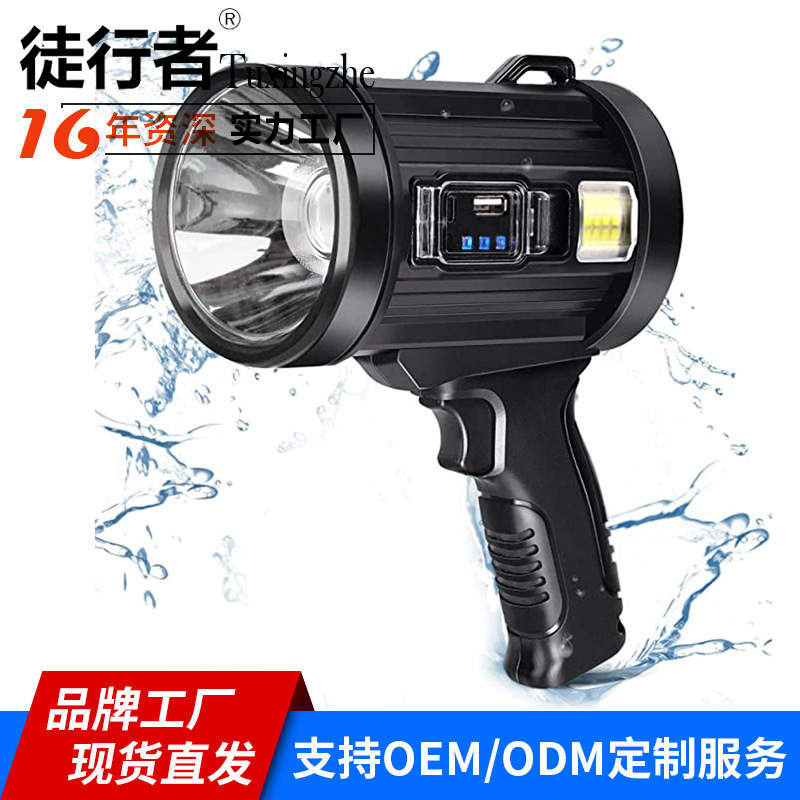 Lintas batas lampu senter luar ruangan, cahaya kuat daya tinggi dapat diisi ulang jarak jauh multi-fungsi tampilan listrik lampu kerja portabel