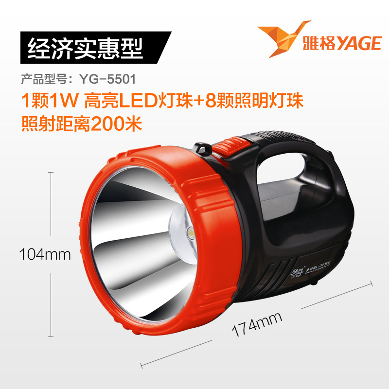 Yage senter lampu LED portabel, cahaya pencarian dapat diisi ulang dengan lampu samping super terang tembakan panjang rumah luar ruangan