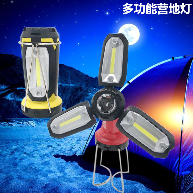 Lintas batas lampu sorot baru multi-fungsi luar ruangan tenaga surya berkemah lampu penerangan darurat COB lampu senter LED