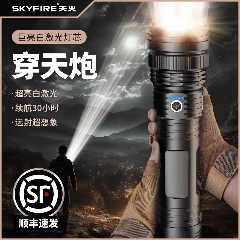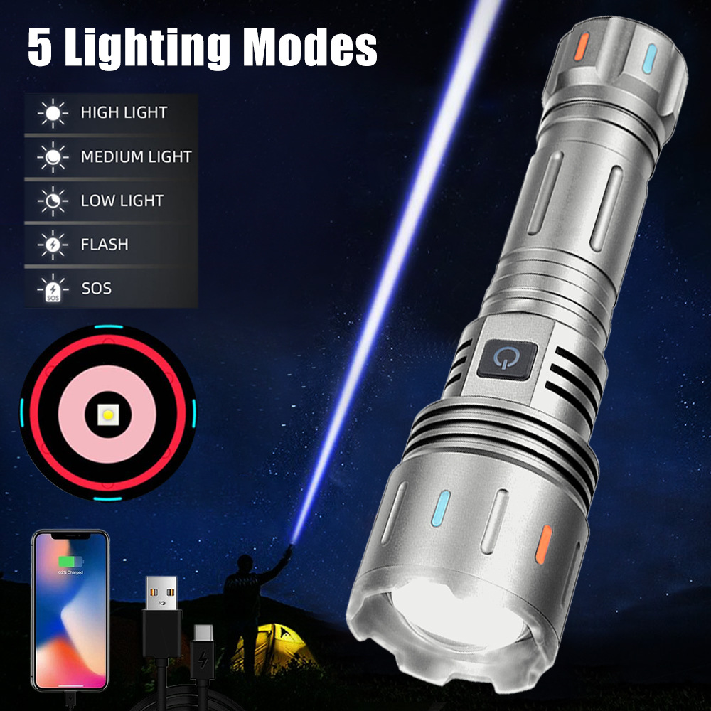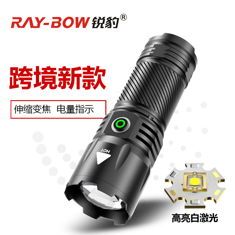 Senter laser lintas batas putih, senter darurat rumah tangga lemparan jauh super terang output USB tahan air zoom laser