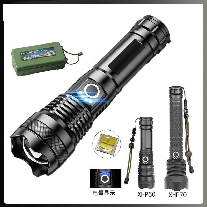 Hongya senter jarak jauh, senter lintas batas HP50 aluminium Aloi zoom baterai lithium, dapat diisi ulang USB, lampu luar ruangan kuat