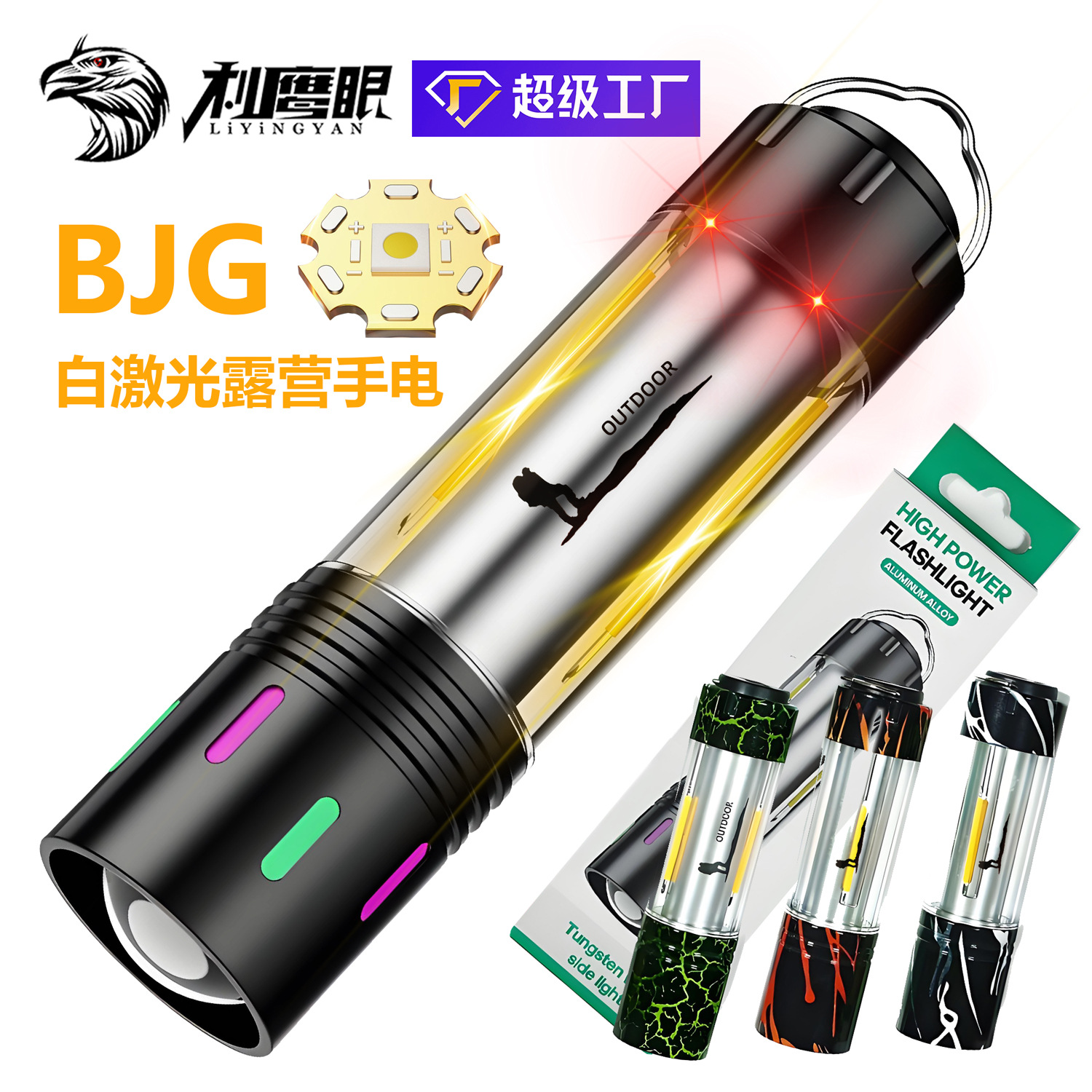 Lampu senter LED multifungsi, cahaya LED kuat portabel lintas batas, lampu kerja darurat pasar malam