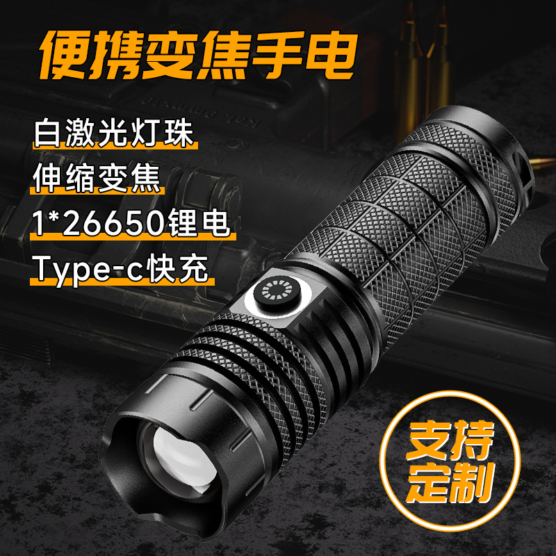 Senter laser macan tutul putih, TYPE-C, lampu darurat dapat diisi ulang, lampu luar ruangan, senter sorot putih zoom cahaya kuat