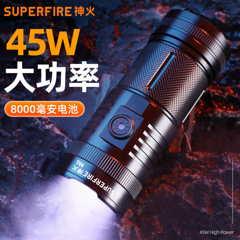 Shenhuo M6 senter cahaya kuat dapat diisi ulang luar ruangan long shot King penetrasi super terang kuat dapat difoto tes anggur lama Mao Zhao