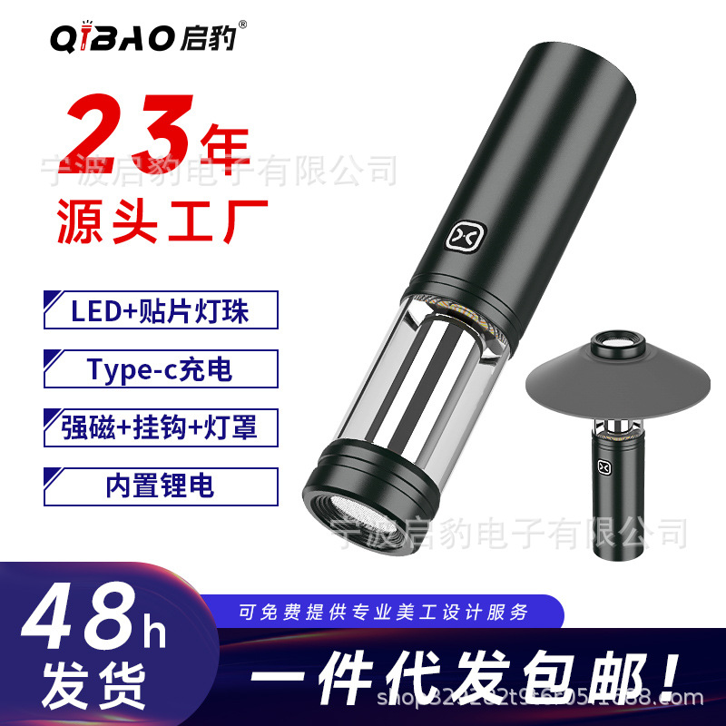 Distribusi kait magnetis kuat LED lampu berkemah Tipe C pengisian daya senter rumah tangga portabel dua dalam satu pegangan tangan
