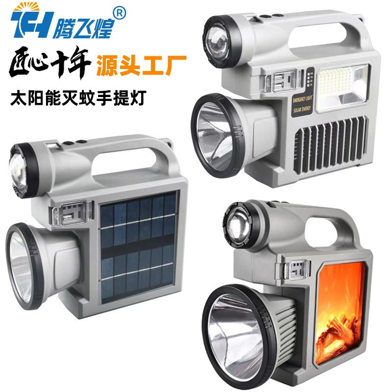 Lintas Batas Luar Ruangan Multi-Fungsi Portabel Dapat Diisi Ulang Senter Cahaya Kuat Zoom Lampu Peringatan Surya Lampu Jauh Super Terang