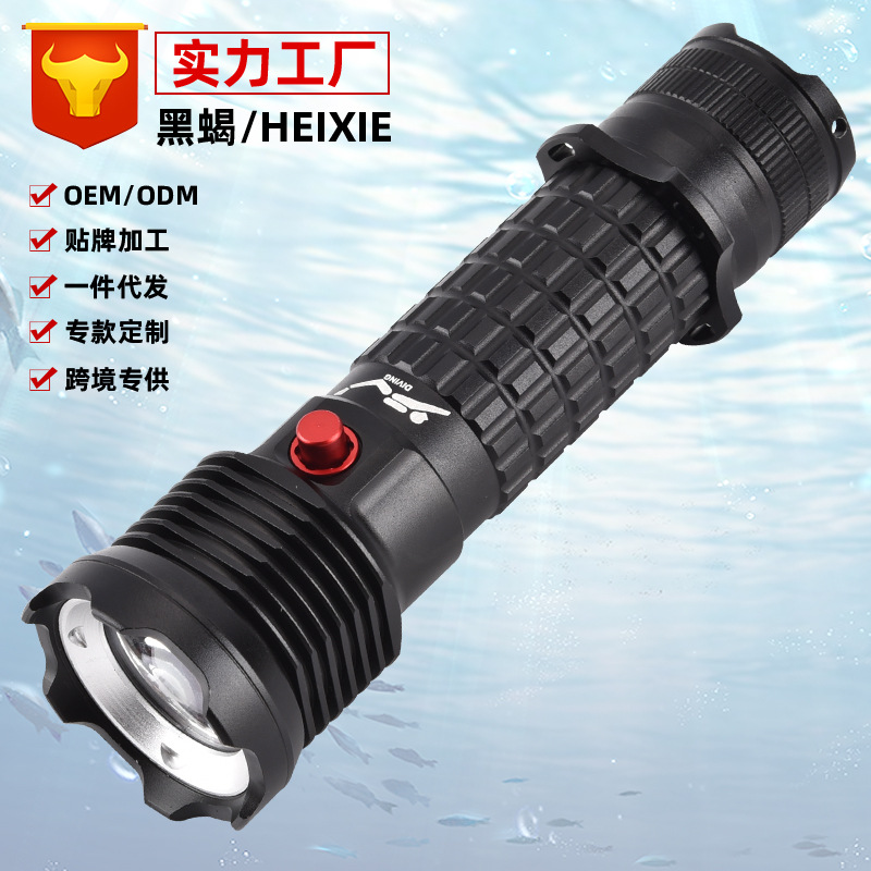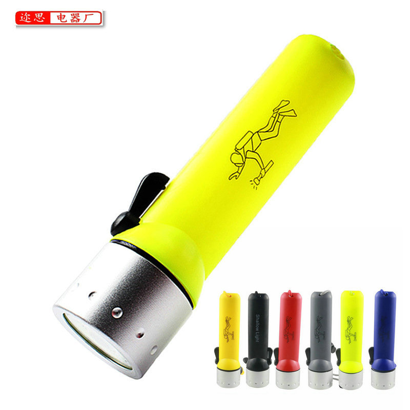 Senter selam lintas batas, senter selam bertenaga baterai tahan air eksplorasi gua bawah air plastik jarak jauh