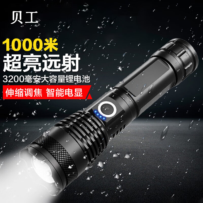 Beigong senter LED kuat 15W 5 kecepatan, lampu variabel cahaya IP65 fokus dapat ditarik baterai lithium BG-T90 cahaya kuat