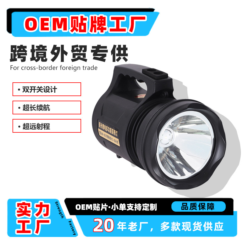 Lampu sorot luar ruangan lintas batas, lampu portabel isi ulang daya tahan lama, senter cahaya kuat rumah tangga multifungsi