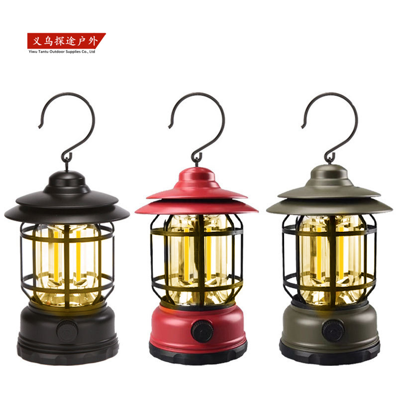 Lampu tenda profesional berkemah luar ruangan, lentera retro baru, lampu cob baterai dapat diisi ulang, lampu berkemah rumah tangga portabel