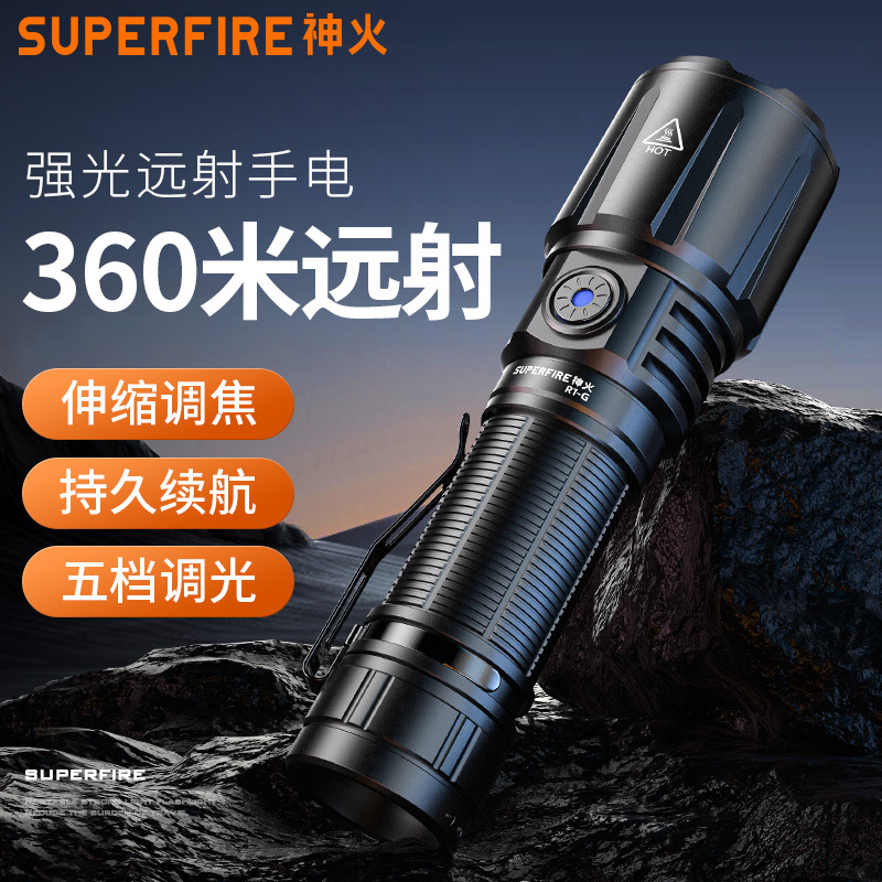 Shenhuo Grosir Cahaya Tinggi Senter Jarak Jauh Charger Tipe-c Lampu Senter LED Fokus Teleskopik Sementara Luar Ruangan
