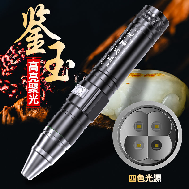 Senter identifikasi giok sumber empat cahaya gelang giok perhiasan cahaya kuat lampu tiga warna 365nm lampu detektor uang ungu