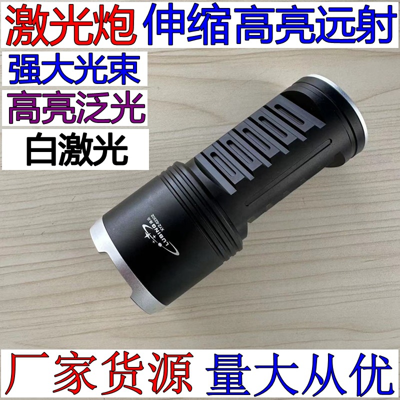 Senter cahaya kuat aluminium Aloi tahan air, Senter rumah luar ruangan perbesaran super terang tembakan jauh laser putih, senter cahaya kuat