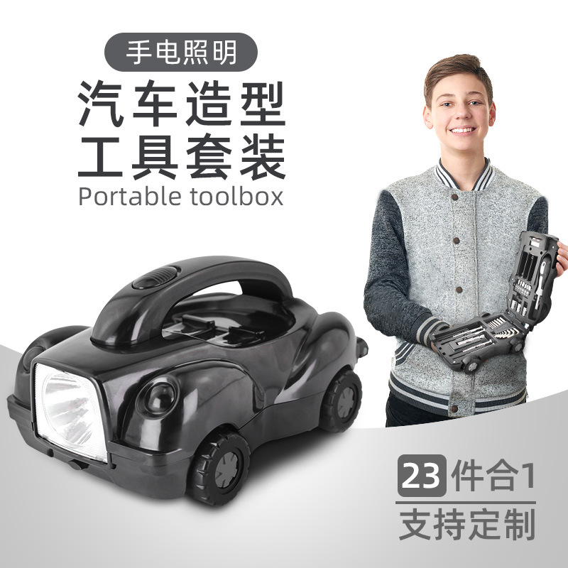 Kotak Peralatan manual dekorasi mobil, Senter LED bentuk mobil DIY alat rumah tangga
