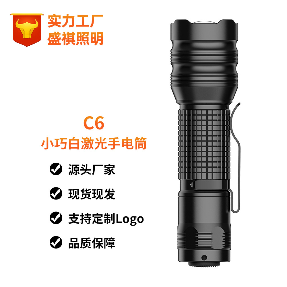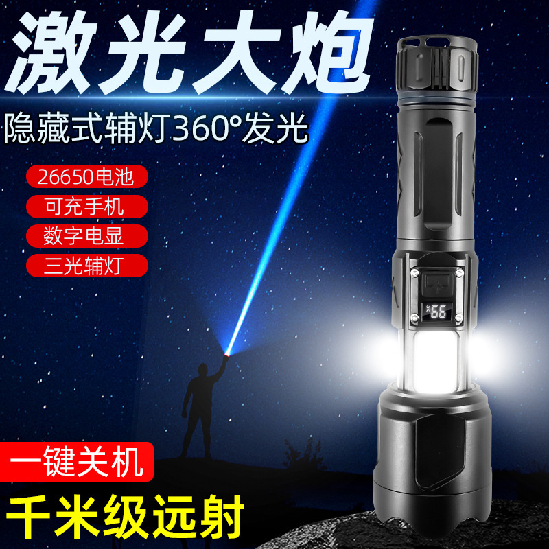 Laser putih kuat lintas batas, cahaya kuat jarak jauh super terang zoom Bank daya aluminium Aloi senter mini