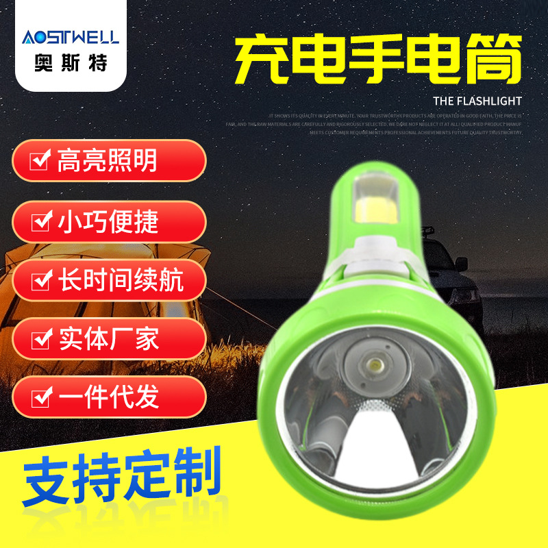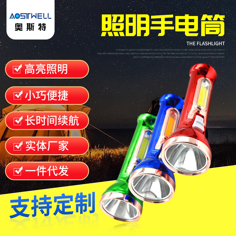 Senter COB baru lintas batas, pengisian daya usb dengan lampu samping, Senter led multifungsi plastik portabel