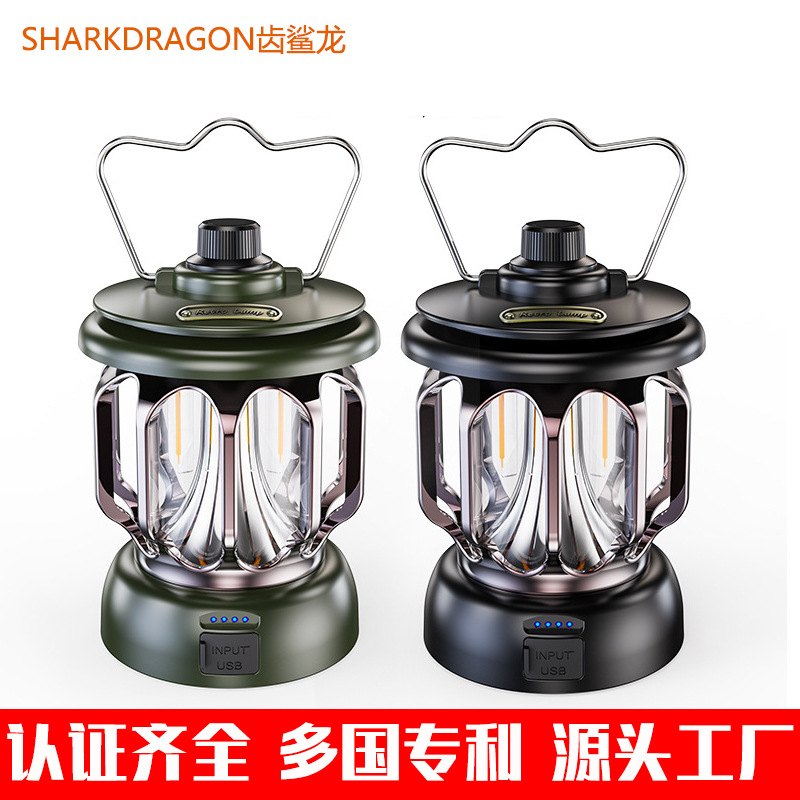 Lampu senter berkemah rumah tangga, lentera retro lintas batas luar ruangan, senter darurat multifungsi dapat diisi ulang portabel