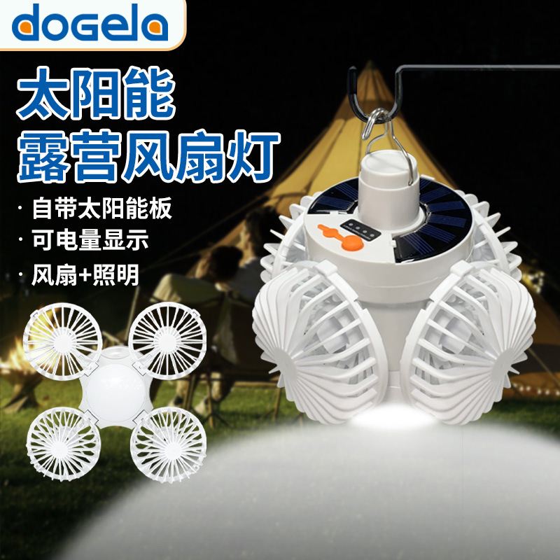 Lampu Kemah tenaga surya multifungsi, lampu tenda lentera luar ruangan dengan kipas lipat, lampu portabel kuat