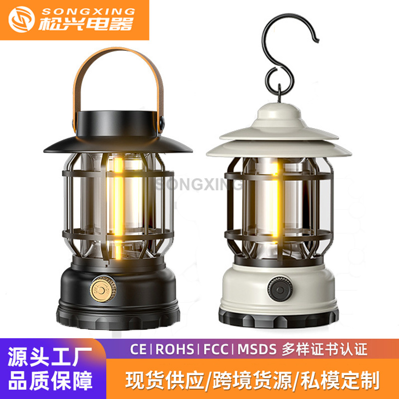 Lampu tenda berkemah multifungsi, lampu rumah luar ruangan tenda berkemah baru lintas batas retro lentera cob dapat diisi ulang portabel