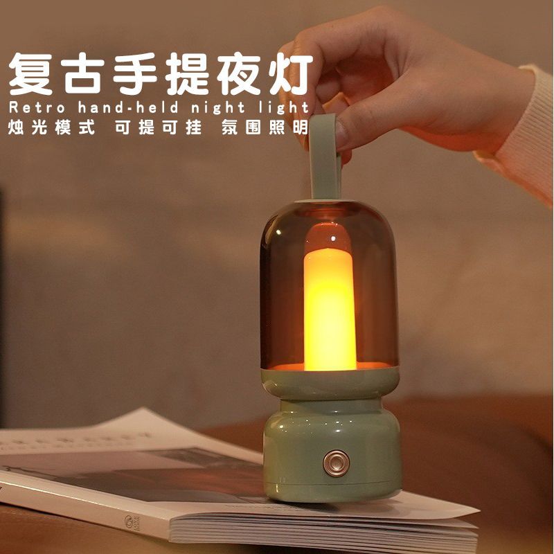 Lampu Tangan Luar Ruangan Retro Lampu Malam Kecil Pengisian Cahaya Lilin Desktop USB Lampu Tangan Dekorasi Kreatif Suasana
