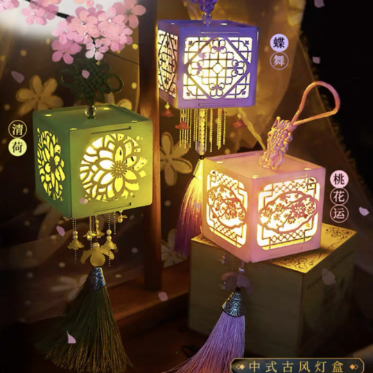 Lampu istana kayu Festival Pertengahan Musim Gugur paket bahan diy lampu bercahaya portabel hadiah jendela bunga hadiah untuk pacar