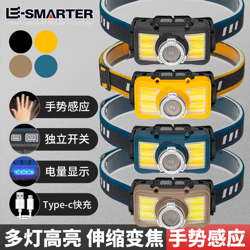 Lampu depan LED mini multifungsi, lampu depan LED mini lintas batas, induksi gelombang COB luar ruangan, petualangan, memancing, lampu depan kuat