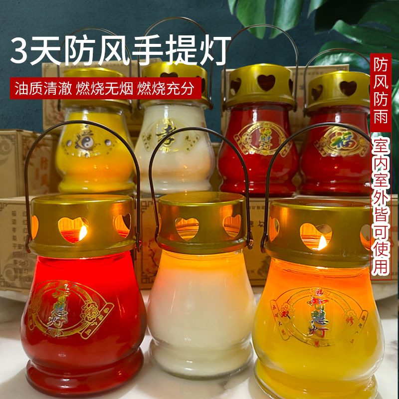 Lampu portabel luar ruangan, lampu mentega 3 hari tahan angin tahan hujan kejernihan keberuntungan Ping An Fu 2024 kata peringatan Rumah Buddha sembahyang lampu portabel