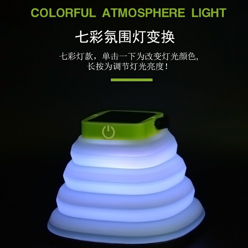 Lampu lipat tenaga surya warna-warni, lampu tenda isi daya USB tahan air lampu darurat luar ruangan lampu teleskopik