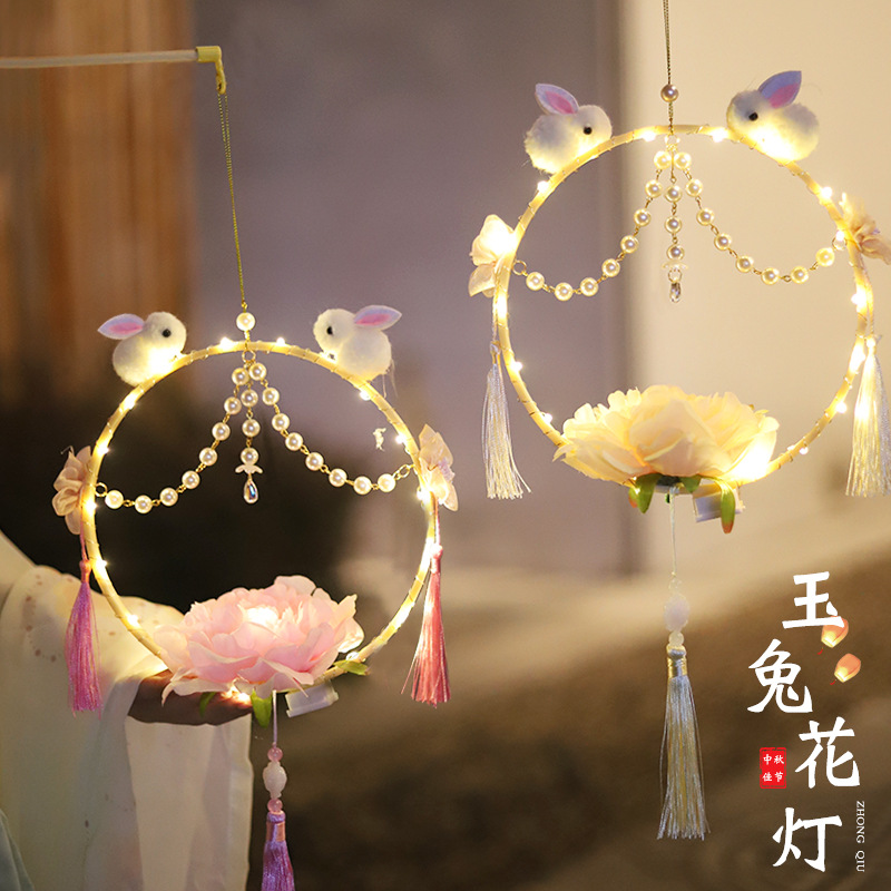 Lampu portabel bercahaya paket bahan diy buatan tangan dekorasi lentera festival Tahun Baru lampu kelinci giok kreatif foto Hanfu