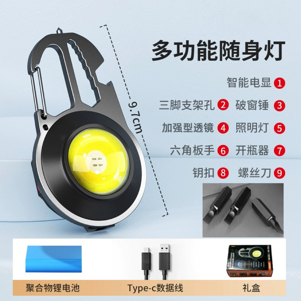 Lampu berkemah portabel, Gantungan Kunci Lampu portabel lintas batas USB multifungsi, lampu pemeliharaan COB, lampu berkemah, lampu luar ruangan