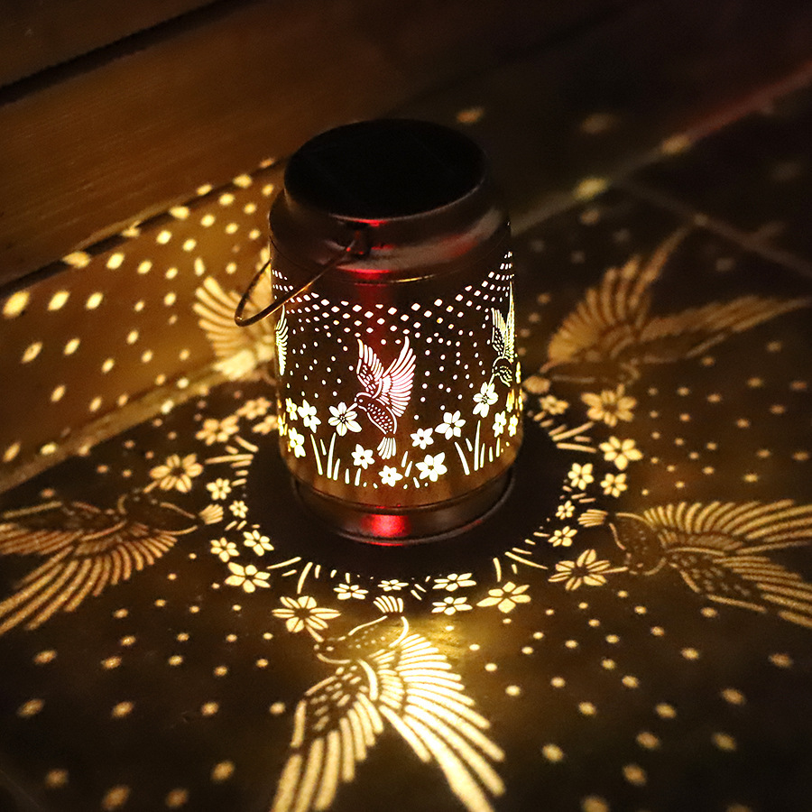 Penjualan Langsung Lampu Tenaga Surya Lampu Proyeksi Barel Langsung Logam Hummingbird Lampu Gantung Pemandangan Halaman Cocok untuk Outdoor Indoor