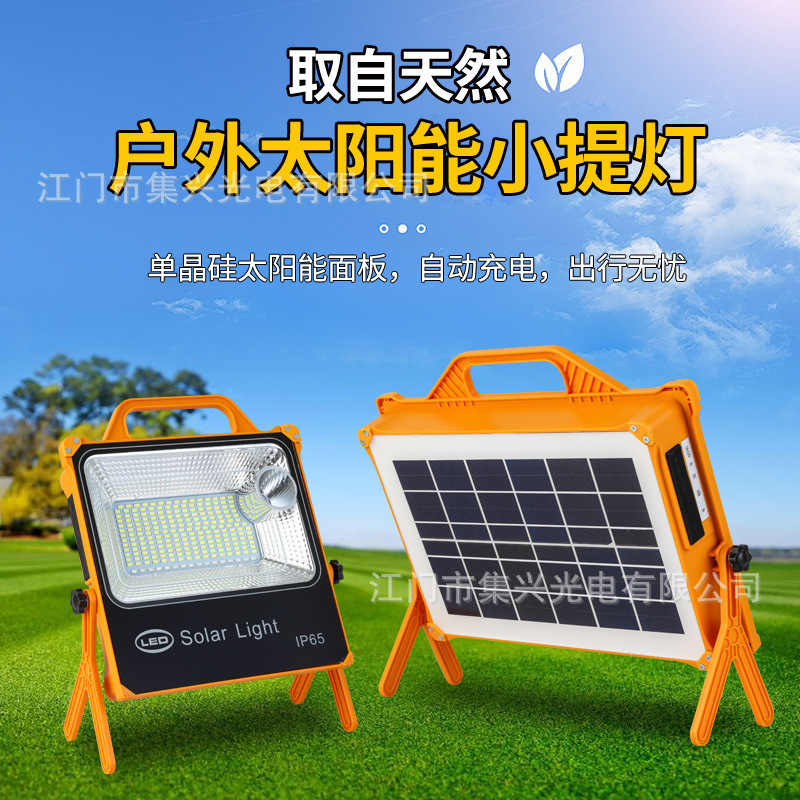 Lampu sorot pengisian daya LED surya portabel lampu darurat multifungsi untuk berkemah luar ruangan