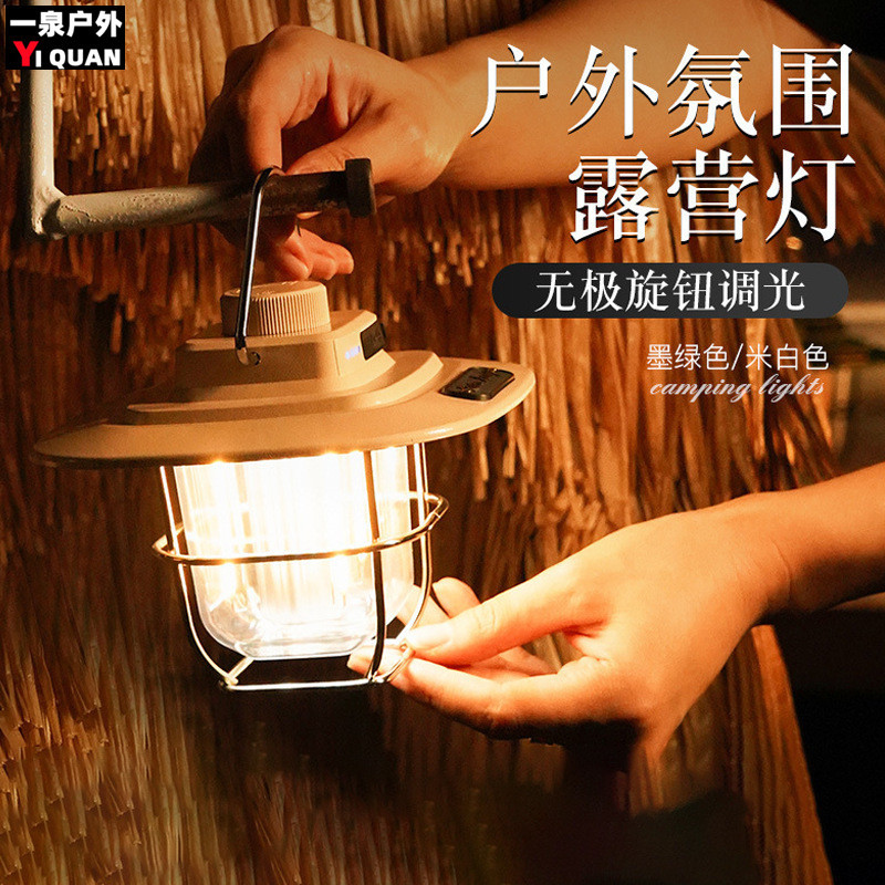 Amazon retro lentera multifungsi, lampu tenda berkemah luar ruangan pengisian daya pintar portabel suasana berkemah rumah