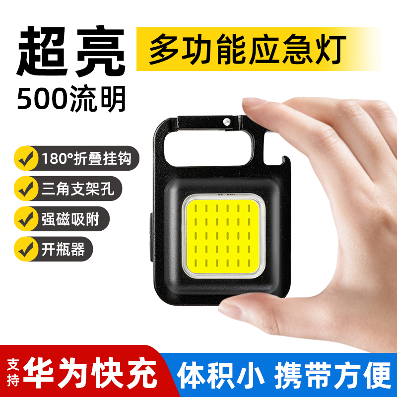 Gantungan Kunci Lampu multifungsi portabel, gantungan kunci cahaya kuat dapat diisi ulang tipe-c, lampu kerja darurat