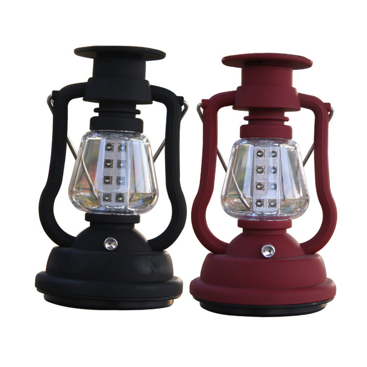 Lampu surya retro lentera senter berkemah putar tangan, lampu tenda pengisi daya matahari portabel
