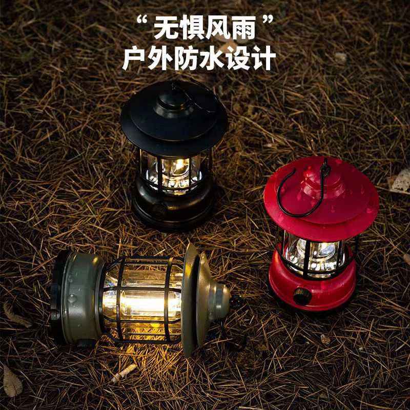 Lampu berkemah led multifungsi, lampu berkemah retro baru, lampu darurat portabel dapat diisi ulang
