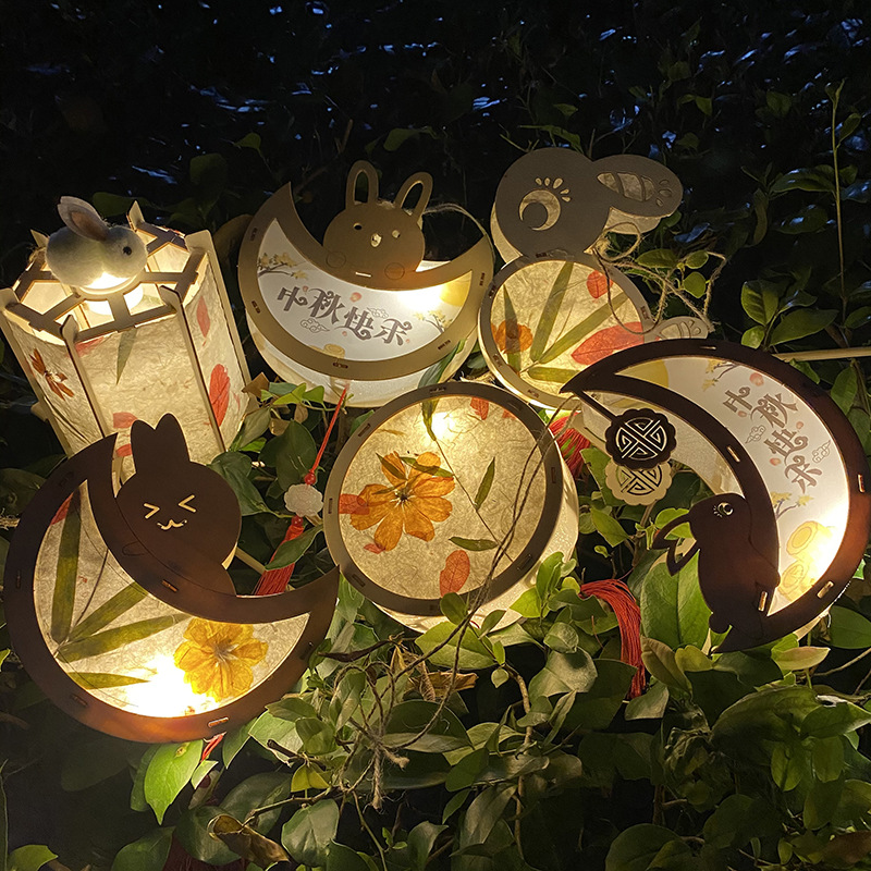 Lampu portabel kelinci Jade kertas bunga paket bahan lentera diy buatan tangan lentera Festival Musim Semi