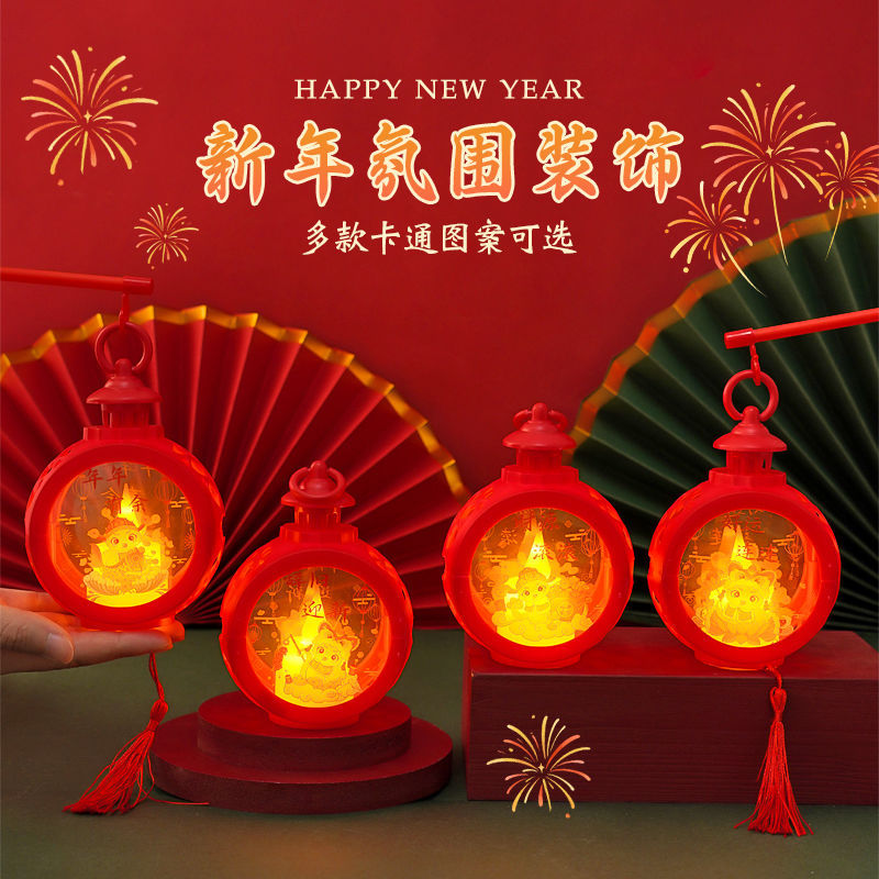 Lampu portabel anak, lentera Tahun Naga grosir, lentera dorong klakson naga, liontin boneka Naga