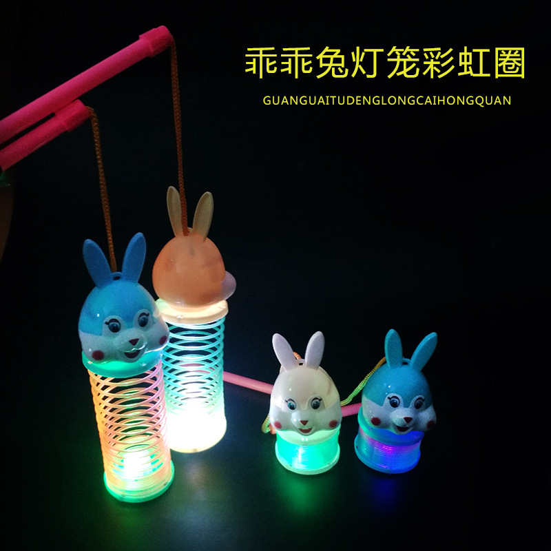 Lentera pelangi cincin bercahaya kelinci musim semi cincin kartun kelinci lampu portabel Stan mainan Produk Baru grosir pabrik