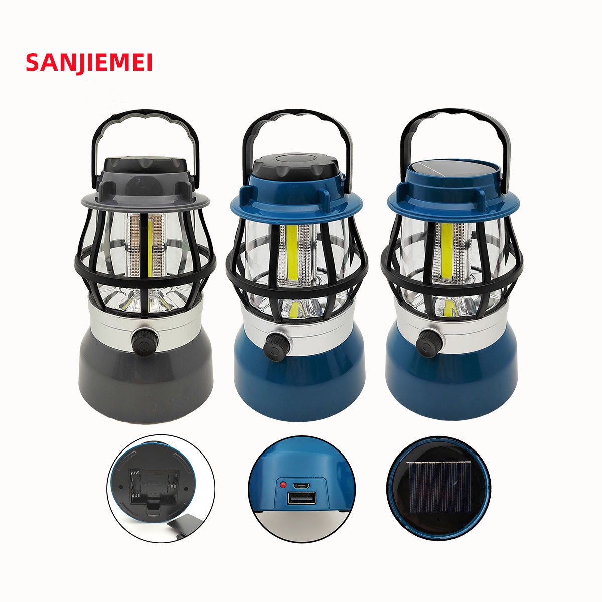 Lampu berkemah luar ruangan, lampu lentera surya portabel pengisian daya, lampu tenda tahan lama super