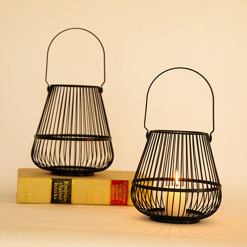 Tempat lilin besi hitam portabel Cina, cangkir lilin luar ruangan, lampu angin dipertebal sesuai wadah lilin gaya kuno