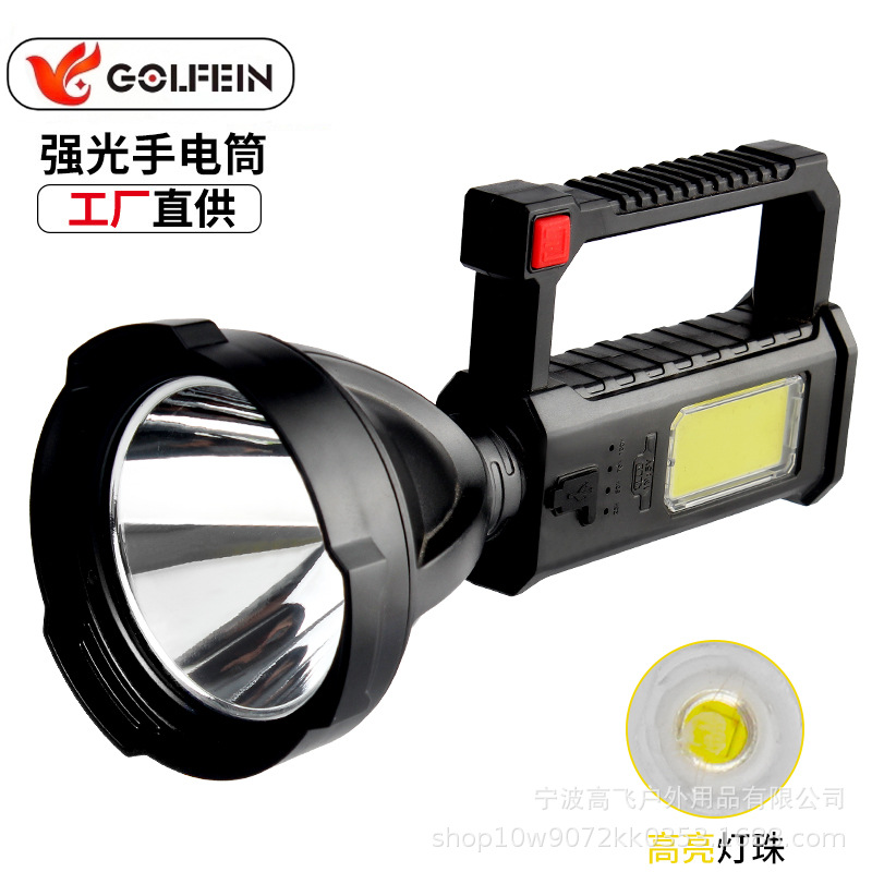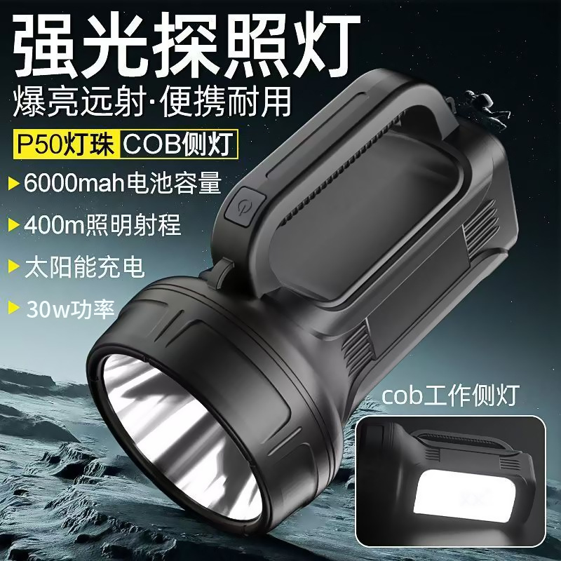 Senter lintas batas, pengisian daya cahaya kuat, lampu portabel jarak jauh super terang luar ruangan, daya tahan lama, kapasitas besar rumah