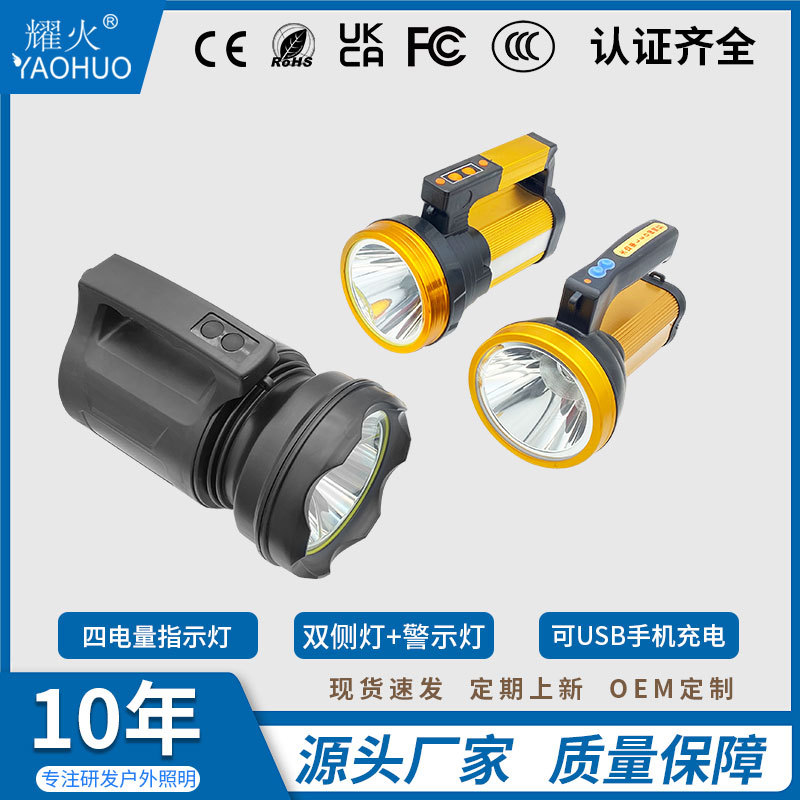 Senter luar ruangan lampu LED kuat, lampu sorot darurat patroli daya tinggi pengisian USB dengan lampu samping