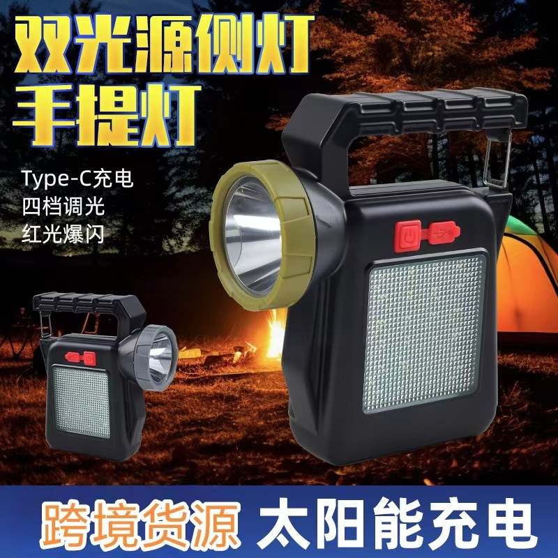 Lampu portabel tenaga surya baru membawa pengisian daya luar ruangan tahan hujan portabel hiking senter kerja lampu sorot