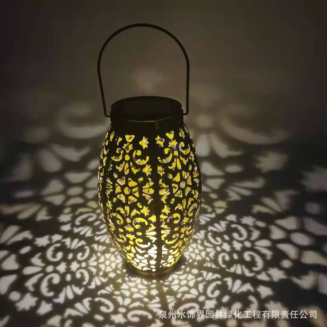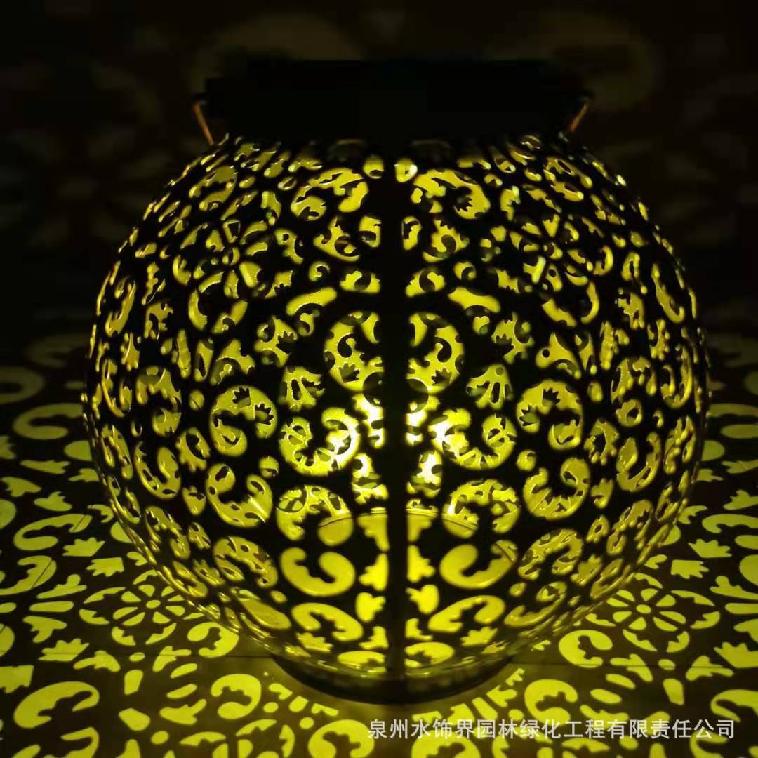 Lampu solar proyeksi bulat, lampu lanskap halaman luar ruangan, lampu portabel proyeksi bulat lentera besi berongga, lampu tenaga surya baru lintas batas